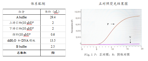 *正對照反應(yīng)單元體系配制:正對照模板加入2μL,加入4.6 μL正對照引物探針Mix(已包含探針和上/下游引物),其他組分參照體系配制。