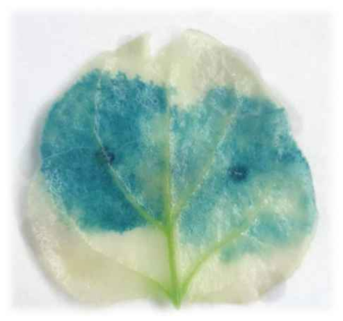 3.洗脫:將材料轉(zhuǎn)入無(wú)水乙醇或80%丙酮中脫色2-3次,至陰性對(duì)照材料為白色。GUS染色陽(yáng)性的藍(lán)色斑點(diǎn)很穩(wěn)定,在酒精中不褪色。