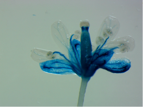4.觀察:一般染色后,GUS染色陽(yáng)性的藍(lán)色斑點(diǎn)肉眼就能看到。但是有些材料可能藍(lán)色斑點(diǎn)很細(xì)微,要在顯微鏡下才能看到。