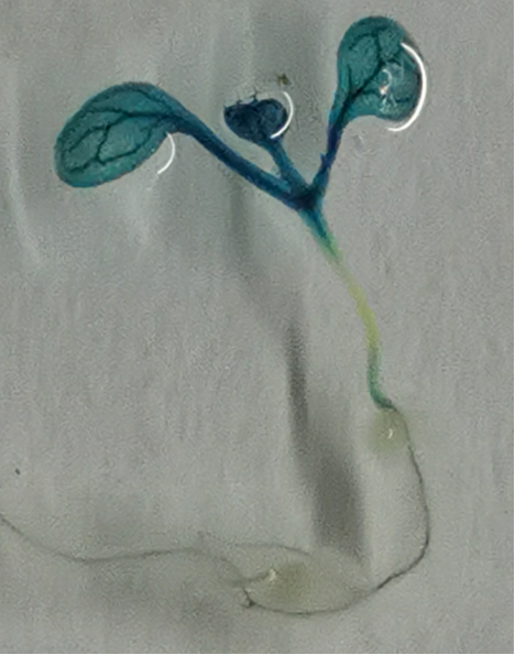 3.洗脫:將材料轉(zhuǎn)入無水乙醇或80%丙酮中脫色2-3次,至陰性對照材料為白色。GUS染色陽性的藍色斑點很穩(wěn)定,在酒精中不褪色。