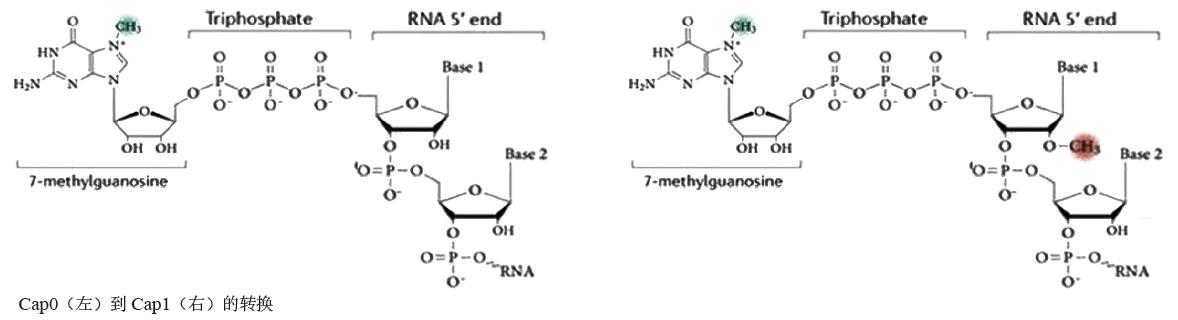 Cap 0-和 Cap 1-mRNA:Cap 0-和 Cap 1-mRNA 之間的差異在 RNA 5'端緊鄰帽結(jié)構(gòu)的第一位核苷酸(N1)是否具有 2'-O-甲基。在高等真核細(xì)胞中,該甲基化是天然加帽過程的一部分,Cap 1 結(jié)構(gòu)提高了 mRNA 的翻譯效率。