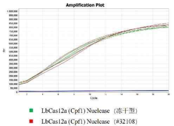 本產(chǎn)品將無(wú)甘油LbCas12a核酸酶凍干,可用于常溫運(yùn)輸及保存,使用配套的凍干Cas酶復(fù)溶液復(fù)溶后,具有與本公司非凍干型LbCas12a (Cpf1) Nuclease(#32108)同等的反應(yīng)活性。本產(chǎn)品包括可用于單個(gè)反應(yīng)的酶凍干粉及凍干球等多種凍干形態(tài),滿(mǎn)足不同下游反應(yīng)體系構(gòu)建的需求。