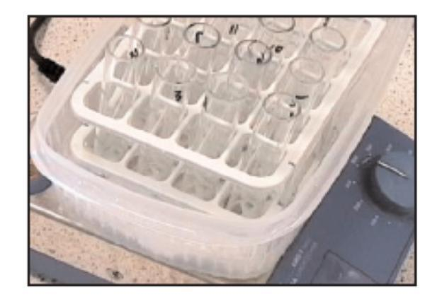 3.蓋緊試管蓋子,用渦旋振蕩器混勻,臥式放入振蕩水浴器,與運動方向平行。