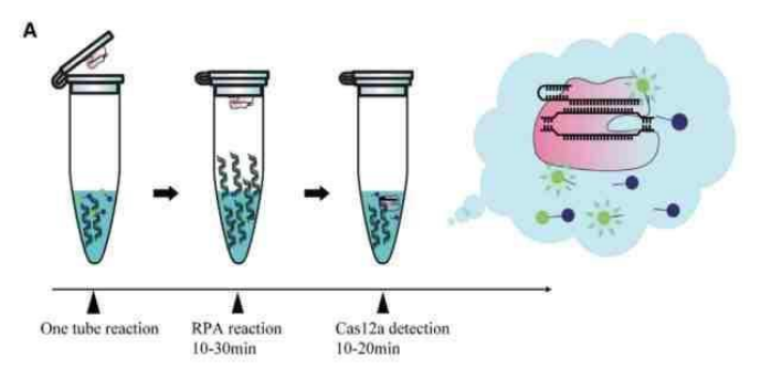 圖2:RPA聯合CRISPR-Cas12a檢測體系的實現1個拷貝的最低檢測限