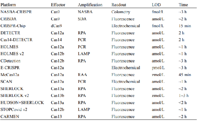 已報道的多種基于 CRISPR 的分子檢測技術(shù)比較
