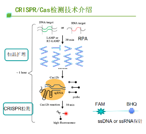 Cas13a:它在sgRNA引導下,可以識別并切割體系中的特異單鏈RNA。在切割特定RNA序列后,其“附屬切割”活性會被激活,可高效地切割體系中的任意序列sSRNA。