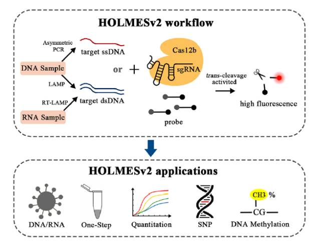 [2] Li L, Li S, Wu N, et al. HOLMESv2: A CRISPR-Cas12b-Assisted Platform for Nucleic Acid Detection and DNA Methylation Quantitation[J]. ACS Synthetic Biology. 2019, 8(10): 2228-2237.