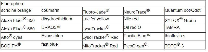 下表中列出的熒光化合物是用于免疫熒光實(shí)驗(yàn)中經(jīng)常選擇的熒光化合物,也是與VECTASHIELD防淬滅封片劑成功搭配使用的熒光化合物。從傳統(tǒng)到現(xiàn)在,這些化合物的范圍,跨越廣泛的光譜范圍,并應(yīng)用與系列的應(yīng)用中,這充分展示了VECTASHIELDTM試劑的多功能性。有關(guān)VECTASHIELD產(chǎn)品可與超過130種熒光基團(tuán)和熒光標(biāo)記搭配使用的完整列表,請?jiān)L問官網(wǎng)https://vectorlabs.com/products/vectashield-with-dapi/