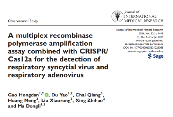 急性呼吸道感染是兒童常見的呼吸道疾病,通常由病毒引起。呼吸道合胞病毒(RSV)和呼吸道腺病毒(ADV)是引起兒童急性呼吸道感染的兩種常見病原體。輕度者可引起常見的感冒癥狀,如咳嗽和流鼻涕,而嚴重者可出現(xiàn)嚴重的并發(fā)癥,如肺炎和中耳炎。根據(jù)世界衛(wèi)生組織的建議,病原體的檢測需要具備快速、準確、敏感、特異性的特點,不應依賴專門的技術人員或大型儀器。因此,開發(fā)一種能夠滿足上述檢測要求的RSV和ADV的檢測方法尤為重要。深圳兒童醫(yī)院兒科研究所的馬東禮主任課題組在《Scientific Reports》期刊上發(fā)表文章《A multiplex recombinase polymerase amplification assay combined with CRISPR/ Cas12a for the detection of respiratory syncytial virus and respiratory adenovirus》,影響因子4.6。