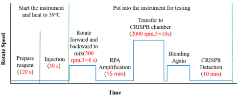 將特異性的 RPA 引物 和 CRISPR 檢測試劑凍干制成微球,預存于擴增腔和檢測腔內(nèi)。