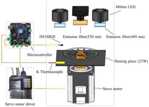 操作時,通過加樣口加入樣品和凍干試劑復溶液,使其依次進入到擴增腔內(nèi)。隨后通過加樣口加入石蠟油,將流道內(nèi)殘留的液體推入廢液腔,并隔離擴增腔。