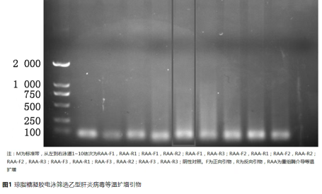 1.試劑與儀器:HBV DNA陽性質(zhì)粒(博邁德生物科技有限公司);HBV國際標(biāo)準(zhǔn)品(英國國家生物標(biāo)準(zhǔn)與控制研究所);瓊脂糖(索萊寶科技有限公司);Tris-乙酸-乙二胺四乙酸溶液和GoldenViewTM(博邁德生物科技有限公司);TIANamp病毒DNA/RNA提取試劑盒(天根生物技術(shù)有限公司);RAA核酸擴(kuò)增試劑盒和逆轉(zhuǎn)錄-重組酶介導(dǎo)的等溫擴(kuò)增試劑盒(眾測生物科技有限公司);乙型肝炎病毒核酸定量檢測試劑盒(圣湘生物);凝膠成像儀和 PCR擴(kuò)增儀(美國Bio-Rad公司);Roche Light Cycler 480 Ⅱ?qū)崟r熒光定量PCR儀器(瑞士羅氏公司)。